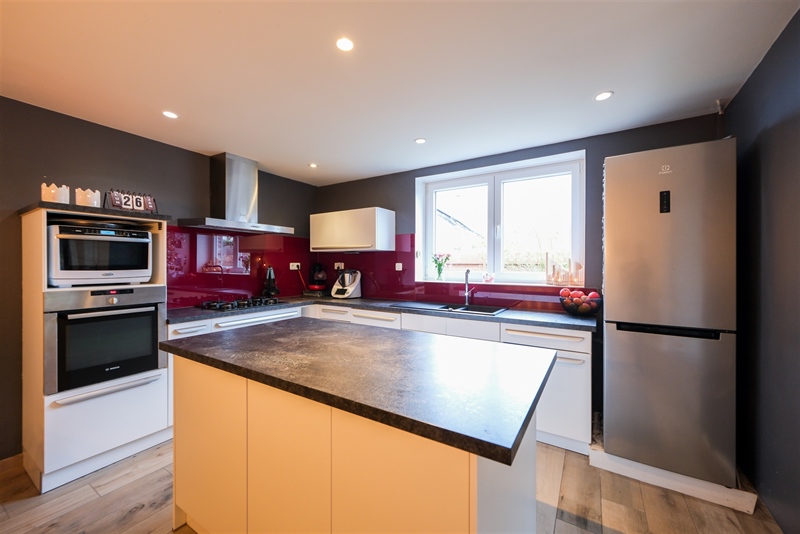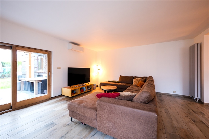 Description : Charmante maison 4 façades semi plain-pied située dans le secteur recherché de Dottignies. Cette habitation offre un cadre de vie agréable et fonctionnel. Le rez-de-chaussée se compose d'un spacieux living ouvert sur une cuisine équipée, d'un cellier, d'un WC individuel, d'une chambre de 12 m² avec dressing, d'une salle de bain équipée avec chauffage au sol, ainsi que d'un débarras et d'un atelier. À l'étage, le hall de nuit dessert un dressing sur mesure de 7 m² et deux grandes chambres de plus de 17 m² chacune, offrant confort et volumes généreux. Les extérieurs séduisent par une terrasse carrelée sous pergola et un jardin clôturé de plus de 200 m², parfaitement orienté plein sud. Pour le côté techniques, nous avons un chauffage central au gaz, une climatisation réversible, une installation électrique conforme jusqu'en 2042, 12 panneaux solaires, des châssis PVC double vitrage et un PEB C établi avant travaux. Trois emplacements de parking privatifs complètent ce bien soigné, idéal pour une famille en quête de sérénité et de durabilité.