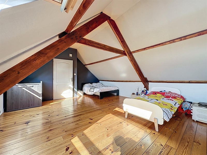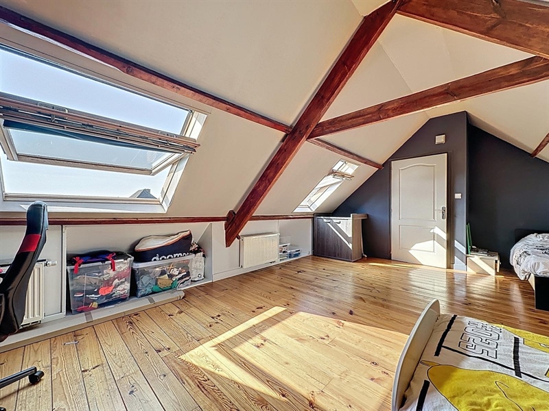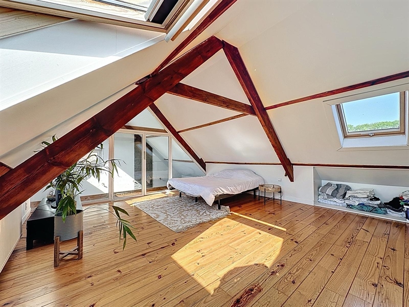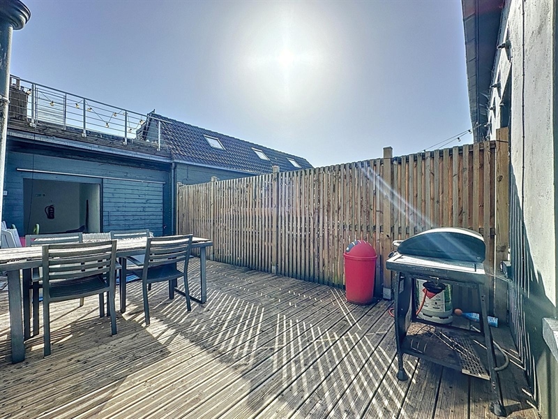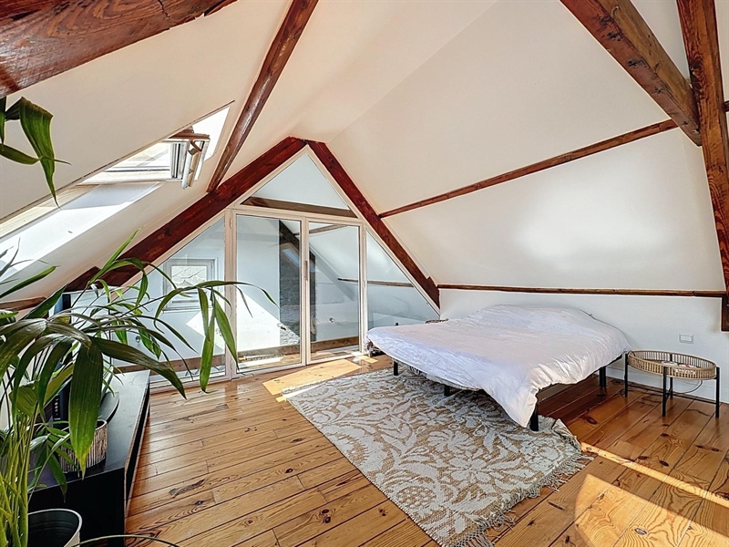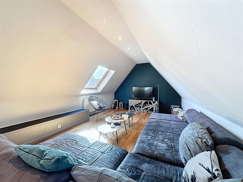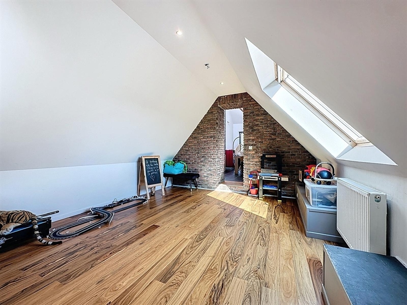 Description : Situé en plein cœur du charmant village de Saint-Léger, ce magnifique duplex type loft séduit par ses volumes généreux, son cachet et sa lumière omniprésente. Dès l’entrée, une première terrasse vous accueille et donne accès à un hall menant à une cave. À l’étage principal, vous découvrirez une vaste salle à manger de plus de 25 m² ouverte sur une cuisine entièrement équipée de 30 m², le tout baignant dans une ambiance chaleureuse. L’espace se prolonge par un salon cosy de 38 m², parfait pour vos instants de détente. Sur ce même niveau se trouvent une première chambre avec accès direct à la salle de bain, un dressing, une buanderie, un WC séparé ainsi qu’une seconde terrasse en bois. À l’étage supérieur, un hall de nuit distribue une suite parentale lumineuse de plus de 25 m² et une troisième chambre spacieuse de 29 m². Côté technique, ce bien dispose de châssis PVC double vitrage, du chauffage central au gaz complété par un poêle à pellets, d’une électricité conforme jusqu’en 2040 et affiche un PEB de classe C. À seulement quelques pas du canal, ce cocon familial unique allie espace, confort et charme dans un environnement paisible et recherché.